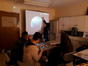 صور اثناء شرح حصة بعنوان ” الاقمار الصناعية والاستشعار عن بعد” للصف الحادي عشر في مدرسة الامل النموذجية للصم مع المعلمة الفاضلة افنان ولويل.
