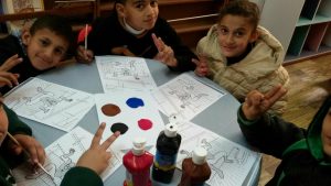 قامت المعلمة الفاضلة سيرين هندومة بعمل نشاط حر لطلاب الصف الثالث والصف الخامس في مدرسة الامل النموذجية للصم ، حيث شمل النشاط القيام بتلوين صور ورسومات متعددة بواسطة الالوان المائية لتفريغ الطلاب لطاقاتهم ، وفي نهاية النشاط عبر الطلاب عن فرحهم بالرسم والألوان.