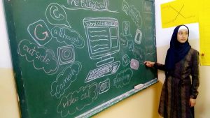 قامت معلمة اللغة الانجليزية في مدرسة الامل النموذجية للصم برسم توضيحي لوسائل الاتصال والتواصل ، وذلك لتسهيل فهم درس مادة اللغة الانجليزية للصف السابع بعنوان “The Talking World”، وذلك ضمن الأساليب والوسائل المميزة التي تمتلكها مدرسة الأمل للصم لدعم طلابها والارتقاء بهم الى الأمام.