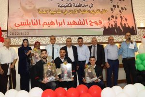 قلقيلية: نظمت مديرية التربية والتعليم في محافظة قلقيلية حفل تكريم للطلبة الأوائل في امتحان الثانوية العامة في كافة الفروع تحت شعار فوج الشهيد “إبراهيم النابلسي”، وذلك تحت رعاية وزير التربية والتعليم أ. د. مروان عورتاني واللواء رافع رواجبة محافظ قلقيلية.