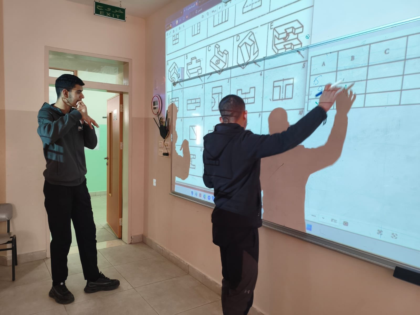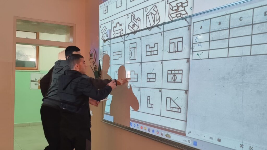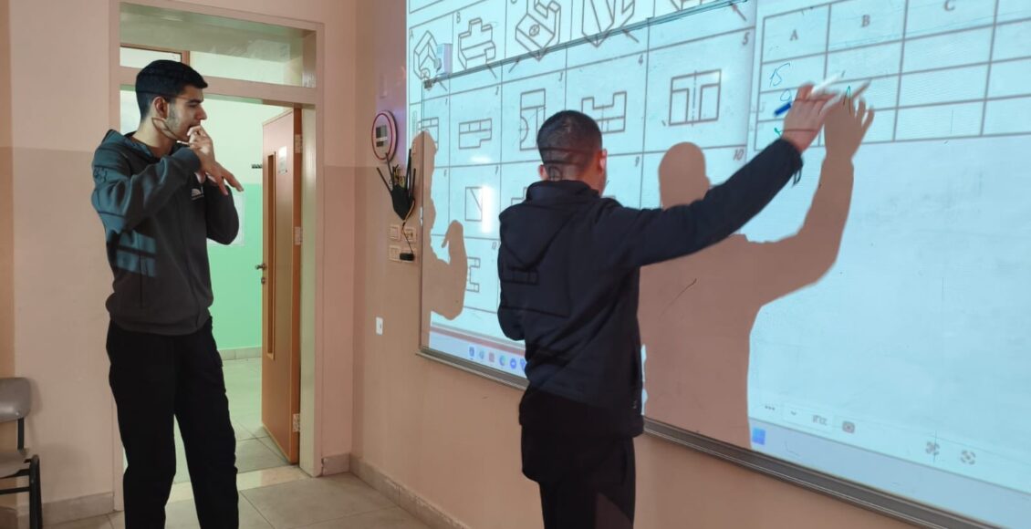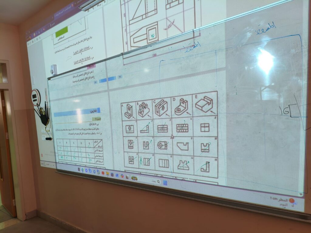 تقديم تدريبات عملية على رسم المساقط للصف الحادي عشر، بمشاركة الصف التاسع، حيث تعرّف الطلبة على أسس رسم المساقط وتنفيذها بطريقة تطبيقية عززت الفهم والمهارة لديهم .