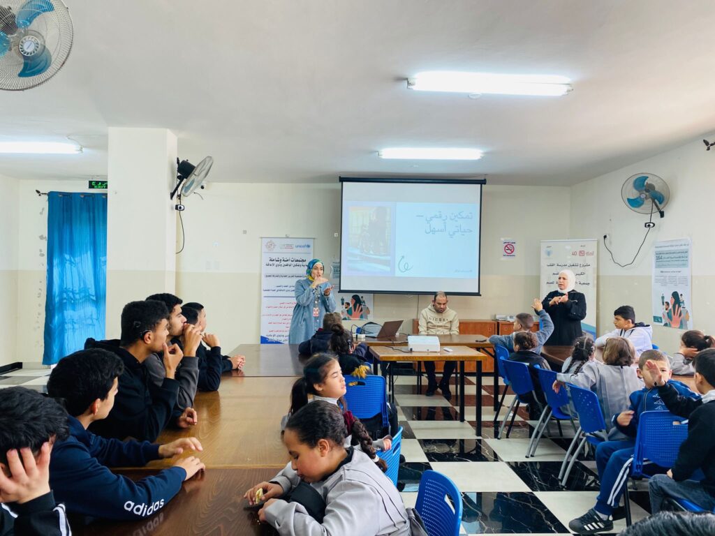 بتنفيذ ورشة لطلاب الصم، قدمتها الأستاذة رباب نوفل، ، وبحضور أ. مهدي سويلم المرشد التربوي في مدرسة عزبة الطبيب الأساسية المختلطة حيث اضفى نافذة على التميّز عبر قصة النجاح الملهمة، الذي رغم كونه كفيفًا، يُنجز أعماله ويسجّل بياناته على الجهاز بشكل مستقل، ليكون نموذجًا حيًا للإرادة والتحدي والتميز. وهدفت الورشة إلى توعية المشاركين، وخاصة ذوي الإعاقة، بالإرشادات الرقمية الصحيحة، وتعزيز الاستخدام الآمن للإنترنت، وتسليط الضوء على أبرز المخاطر الإلكترونية الفكرية والصحية، وسبل الوقاية منها.